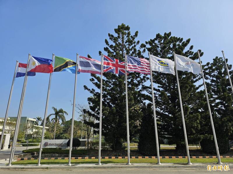 亞蔬-世界蔬菜中心大門口成排飄揚的旗幟中,可看到IKEA的旗幟(右2),引起民眾好奇