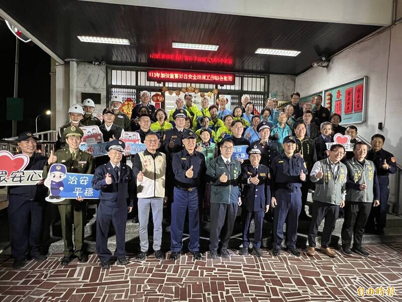 執勤的員警與民間五力伙伴。(記者王俊忠攝)
