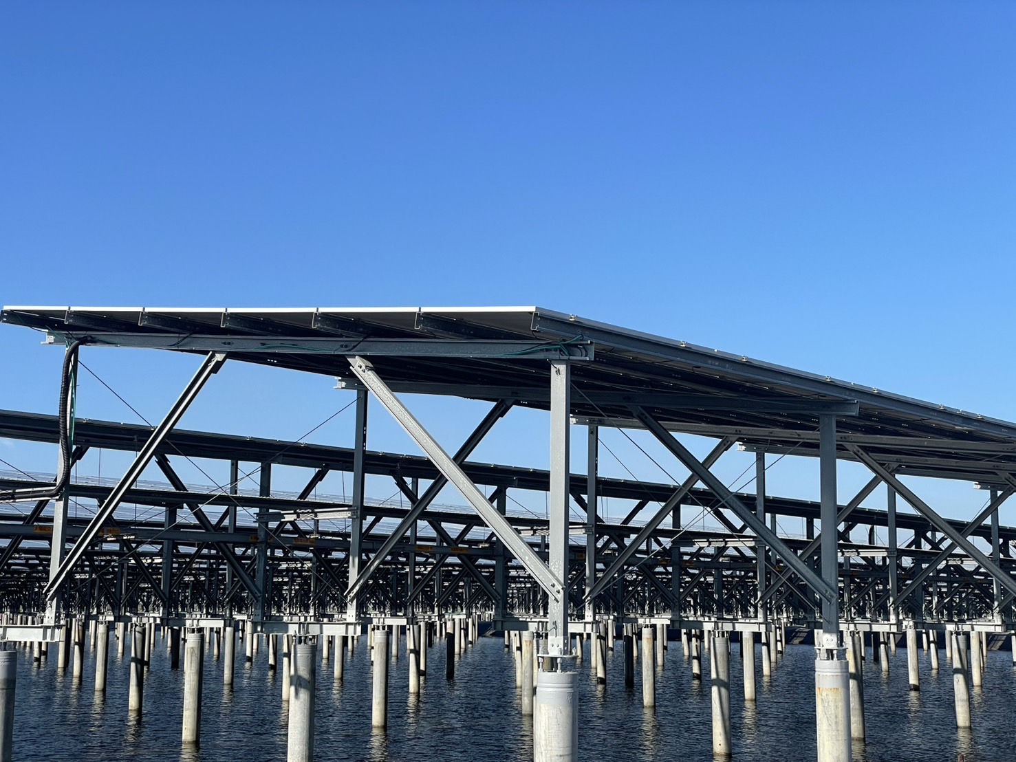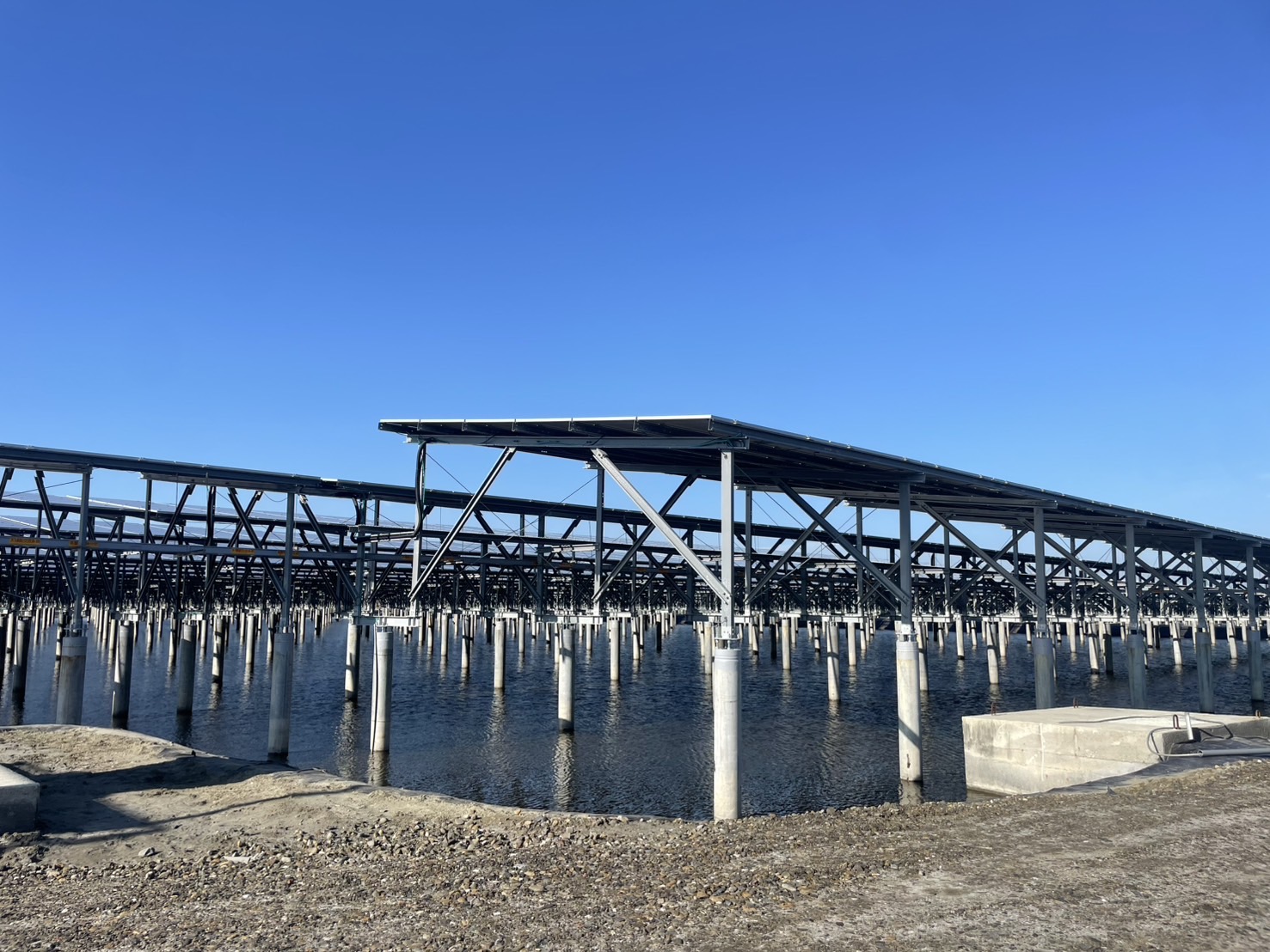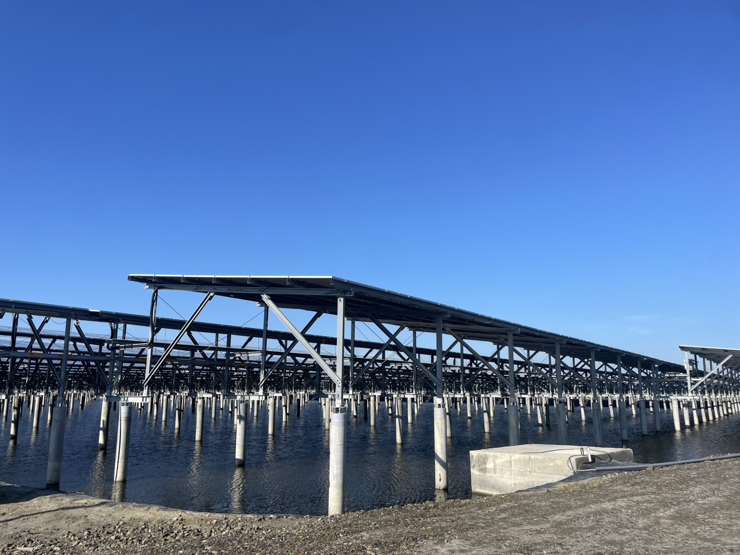 三地集團在台南漁電共生案場共有8場,其中已發電併網約100MW,圖為在七股龍山及鹽埕