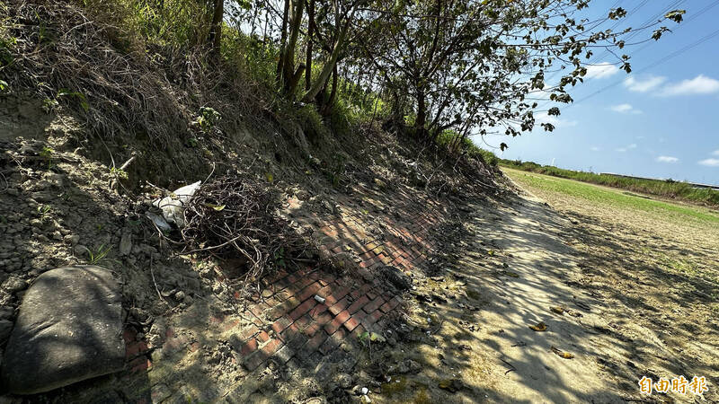 普及後,就沒有人在做了。三崁店段的串磚護岸原本被覆土蓋住,因沖刷而露出,去年巡