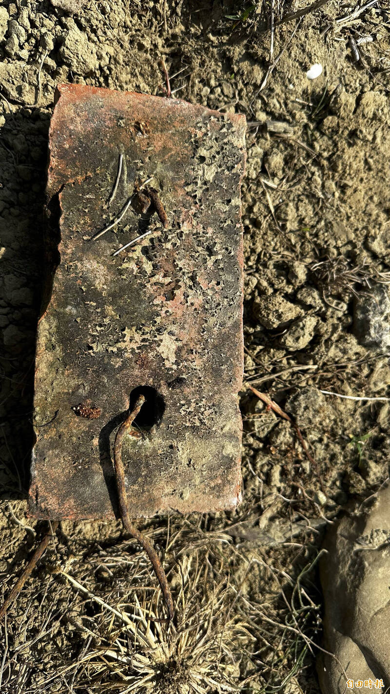 員去年發現1段串磚護岸,還有部分脫落的紅磚,每塊上面可看到2個孔洞,有些更留有鐵