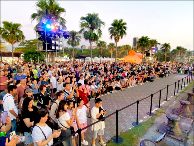 安平漁人碼頭卡比胖拉活動現場,湧入大量人潮。(台南市觀旅局提供)。