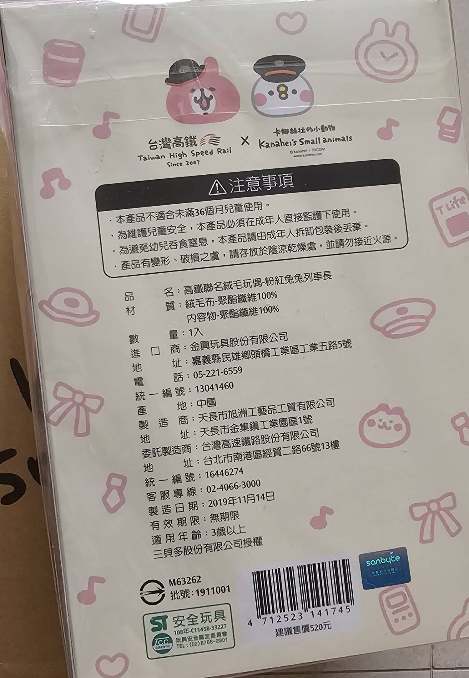 卡娜赫拉兔兔高鐵玩偶,全新未拆$500