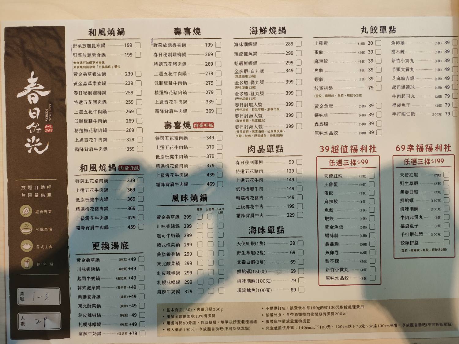 餐廳名稱:春日佐光。涮涮鍋.野菜放題