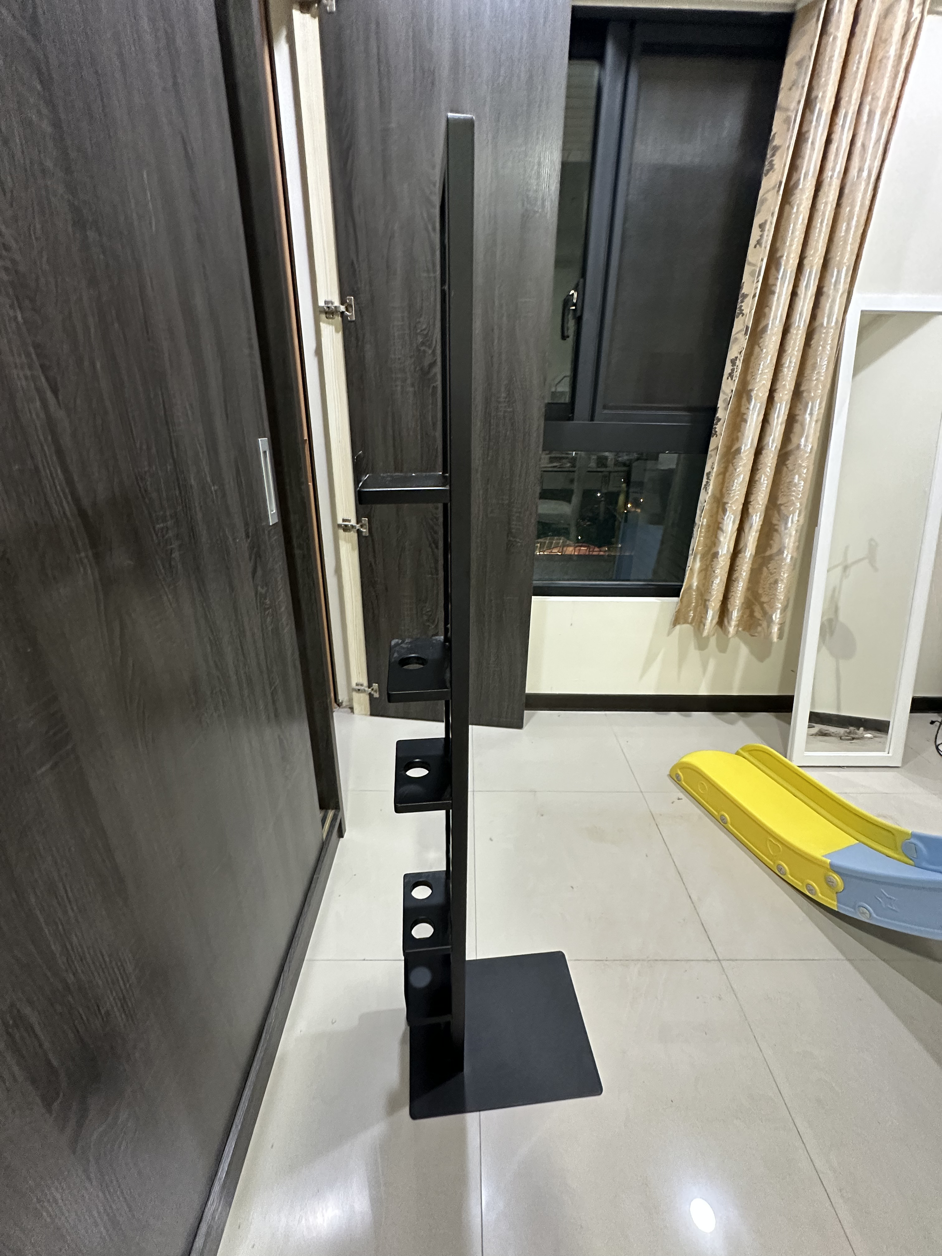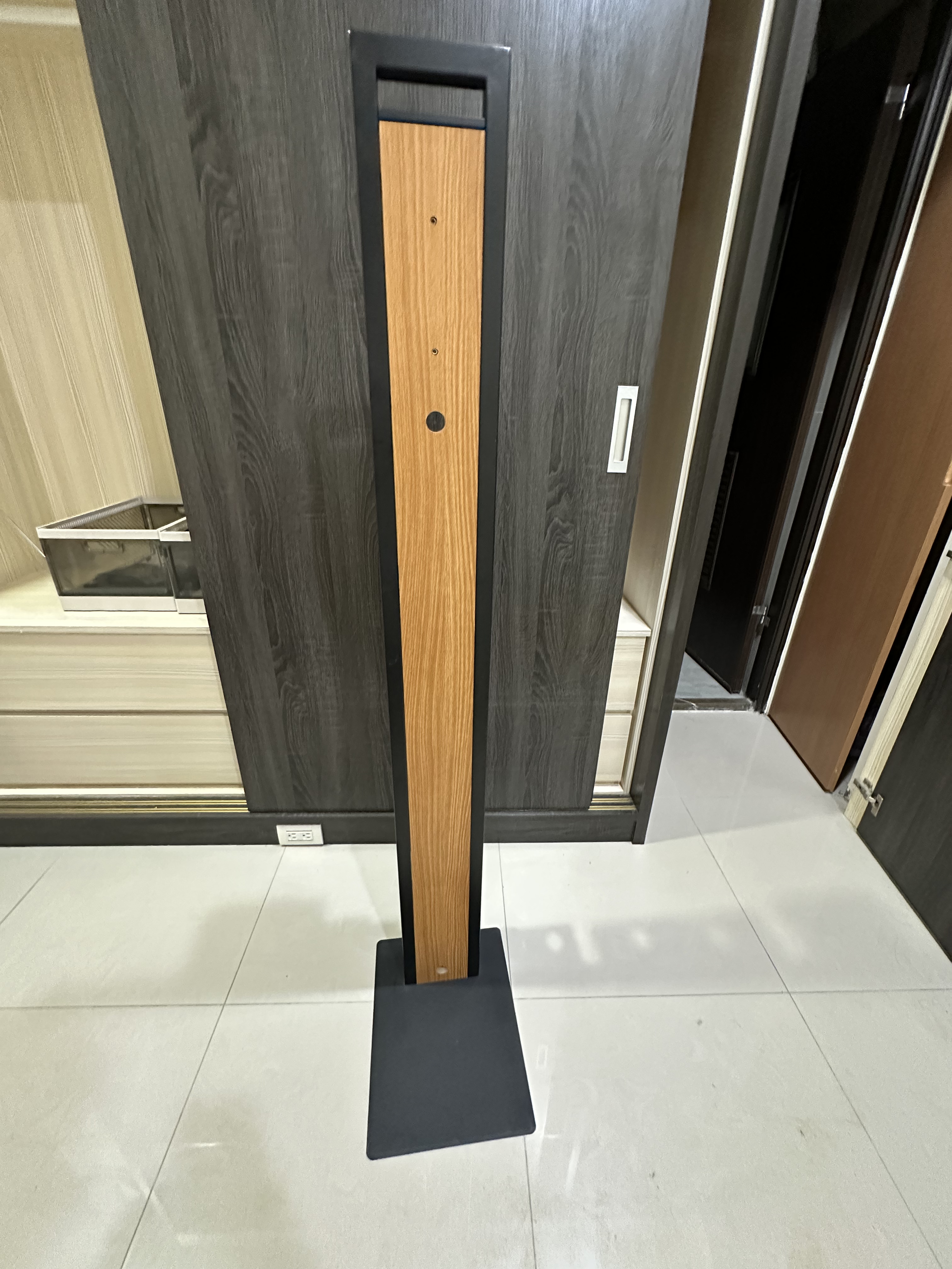 放一台掃地機器人,電線可以穿到後面一起使用,收納挺美觀