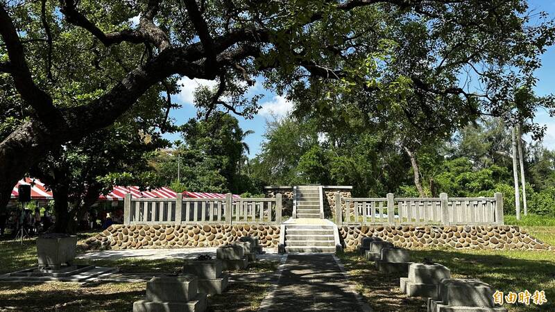 市定古蹟三崁店糖廠神社遺跡現況,仍保留基座。(記者劉婉君攝)