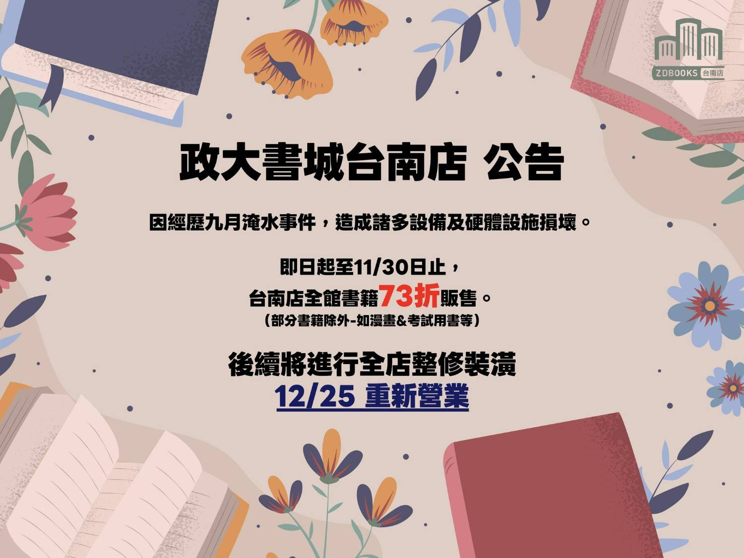 [新聞] 政大書城花蓮店11/25熄燈 台南店苦撐嘆:連假都沒人