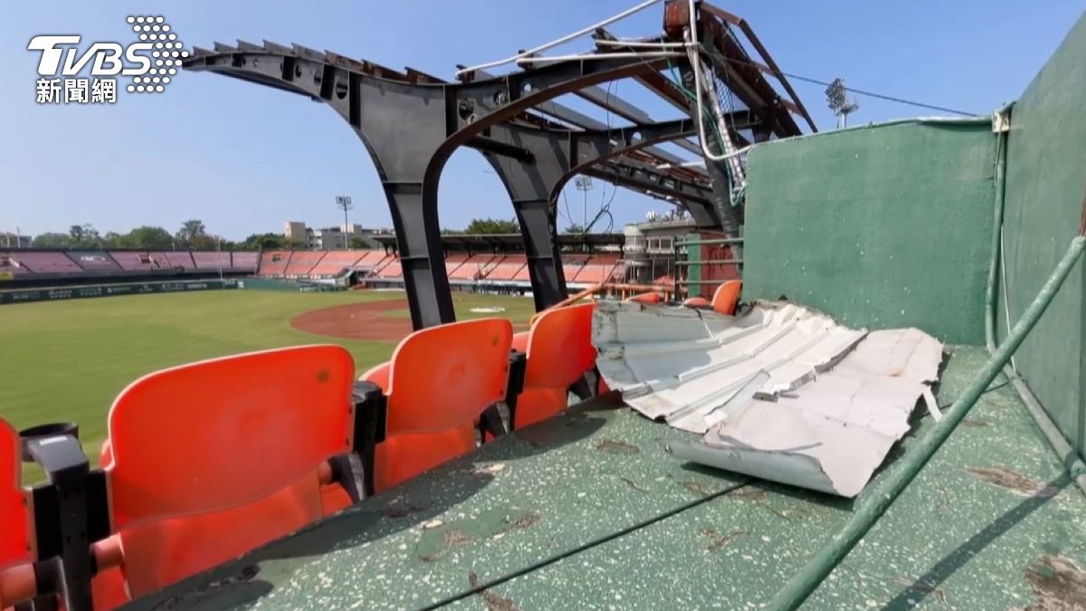 台南市立棒球場在七月遭颱風吹毀後,場內鐵皮掉落在觀眾席,梁柱底座也出現裂縫,目