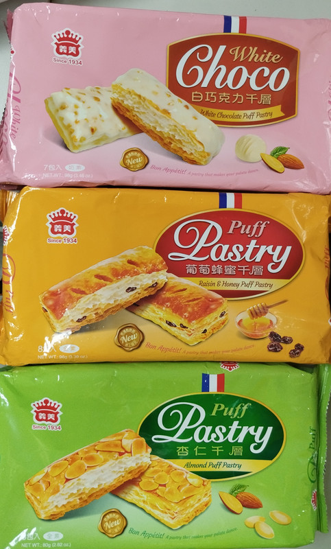 23. 義美千層派剩白巧克力11包,葡萄蜂蜜7包,杏仁5包,1包35元,3包100元,有效期