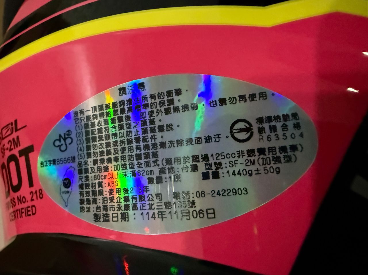 今天剛拿到全新SOL SF-2M全罩式安全帽
