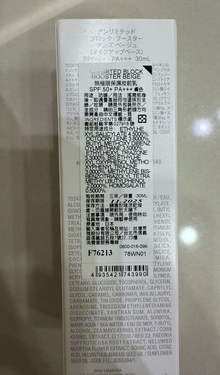 售 :全新 植村秀無極限保濕妝前乳 ,膚色