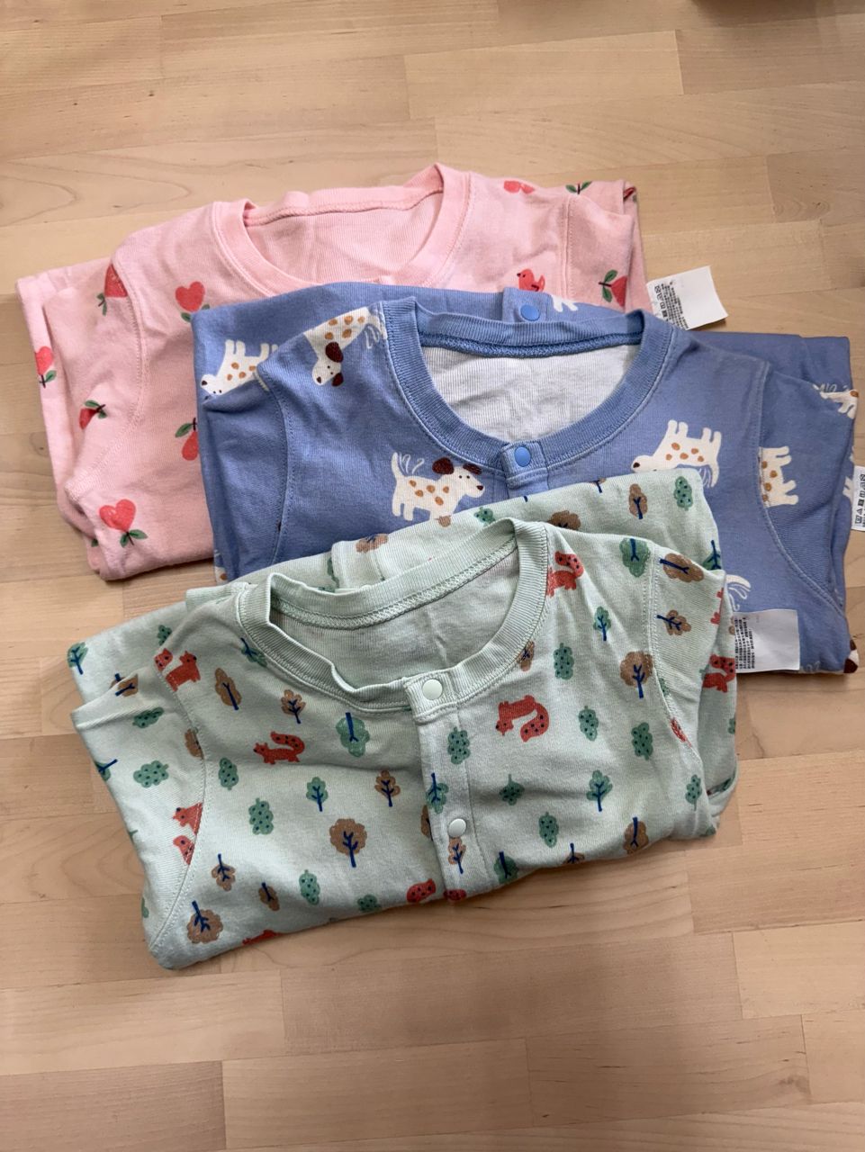 粉色、綠色衣況85新;藍色有微汙當贈送