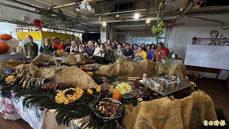 聯合成果展上,藝術團隊以淺山地區的山為靈感設計餐桌,並端出淺山元素的料理。(記