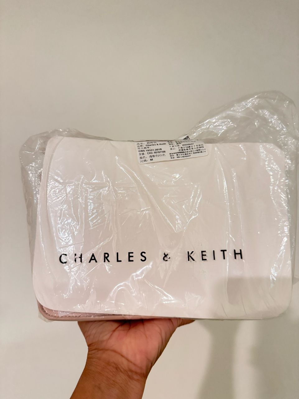 Charles & Keith Micaela 菱格鍊帶斜背包 (淺粉色M)