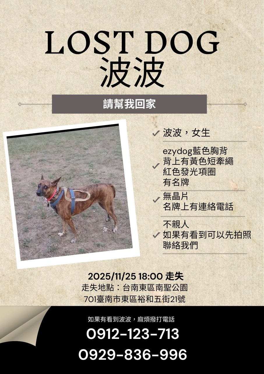 [失蹤]虎斑土狗走失(近東區南聖公園