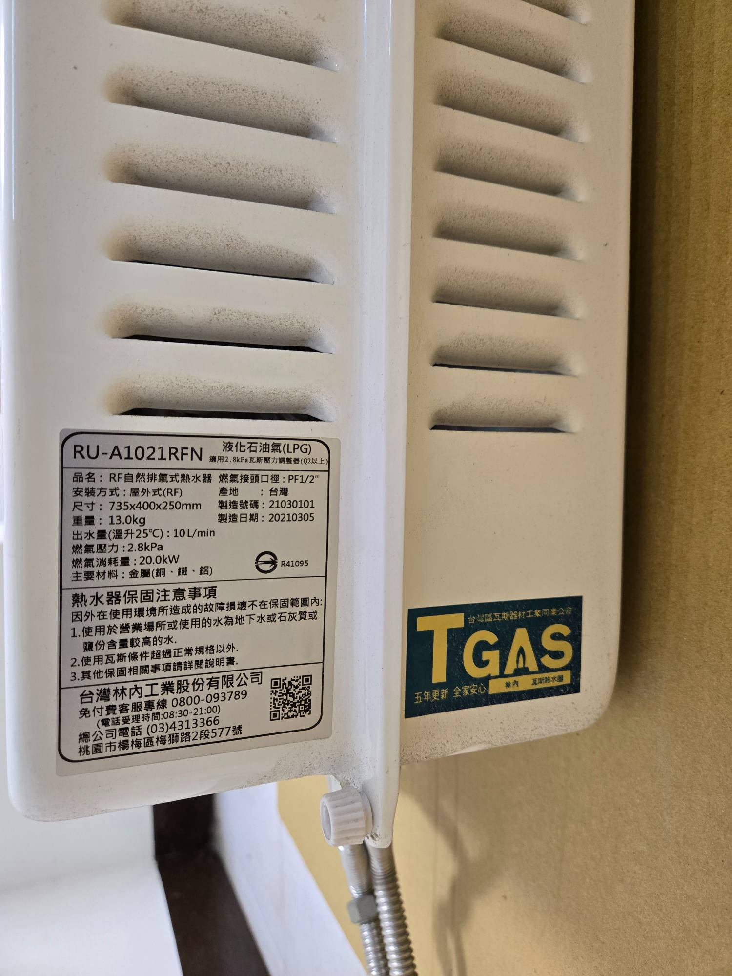 出售物品:林內Rinnai RUA1021RFN 屋外型10L自然排氣熱水器