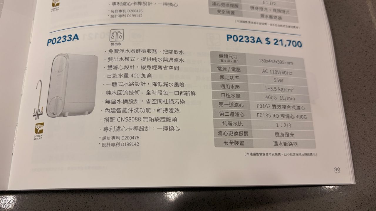 售一台全新未拆未使用的櫻花RO淨水器P0233A