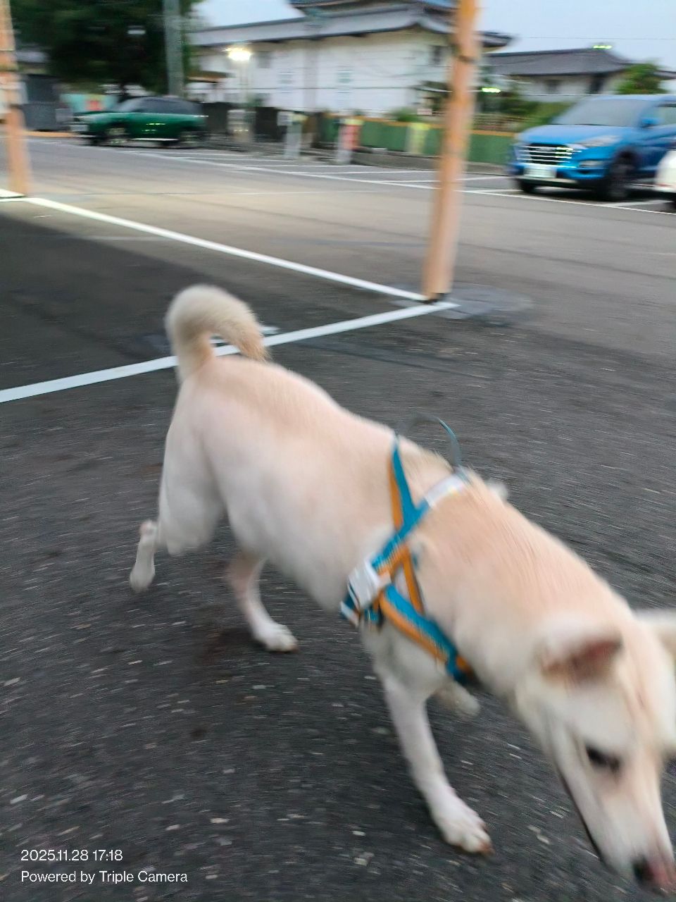 在仁德Hard off前面,感覺狗狗有點緊張,不確定是自己出來玩還是走丟。