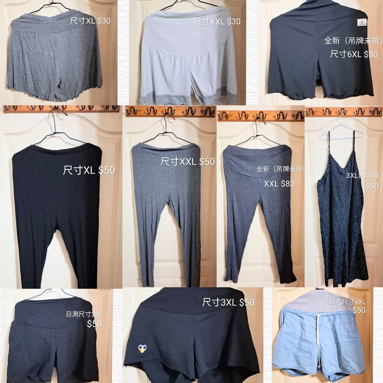 10.孕婦褲,九成新少穿,目視無污(含2件全新&1件洋裝)。尺寸XL-6XL極彈性,有鈕扣