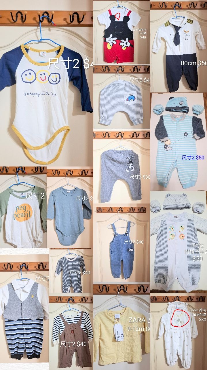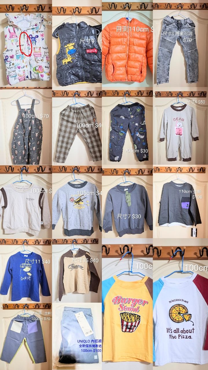 童裝衣況尚佳,惟二手皆視為有污,高標請繞道。整圖販售優先,尺寸以衣標為主,面交