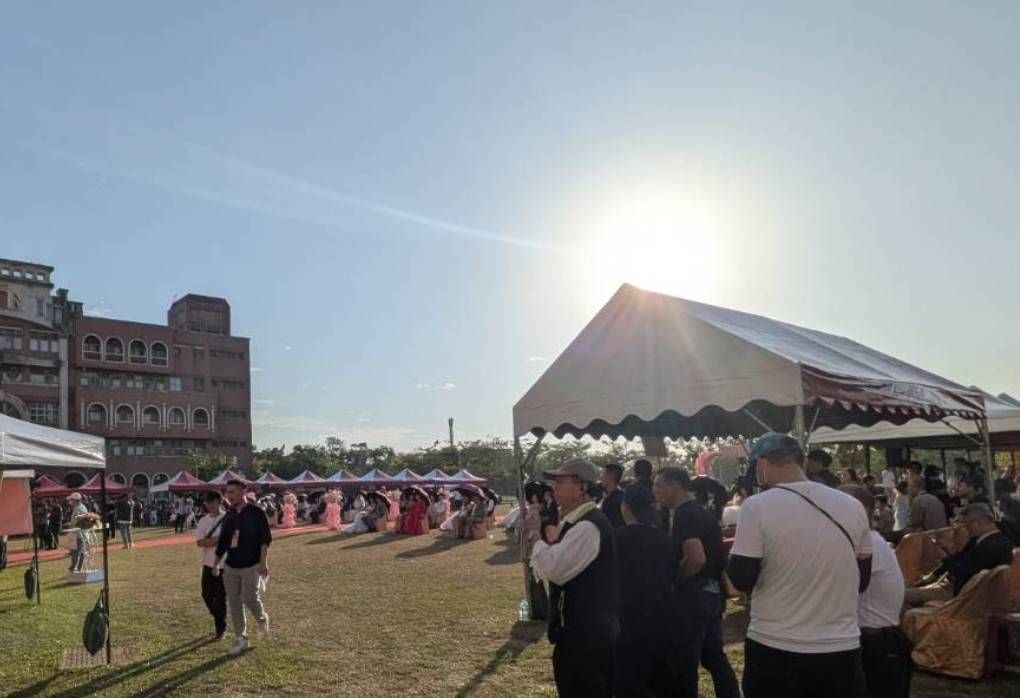 而且讓一堆新人在學校的草皮區撐傘曬太陽舉辦婚禮,四周也都是一堆學校的建築物,實