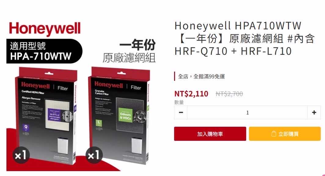 交易物品:Honeywell HPA-710WTW原廠濾網組