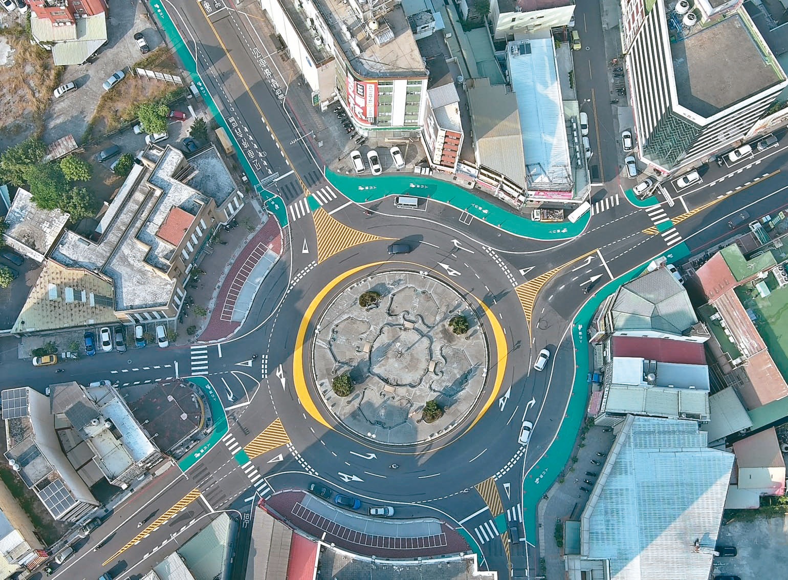 台南市新營圓環標線優化工程完工,引進國際先進「多車道螺旋圓環」設計理念,透過清