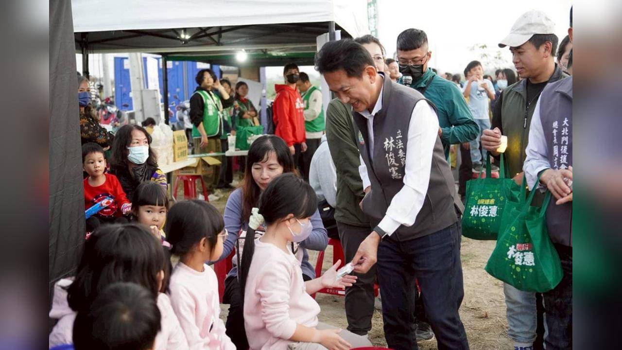 林俊憲親切地一一向到場的大小朋友打招呼。(圖/林俊憲服務處提供)