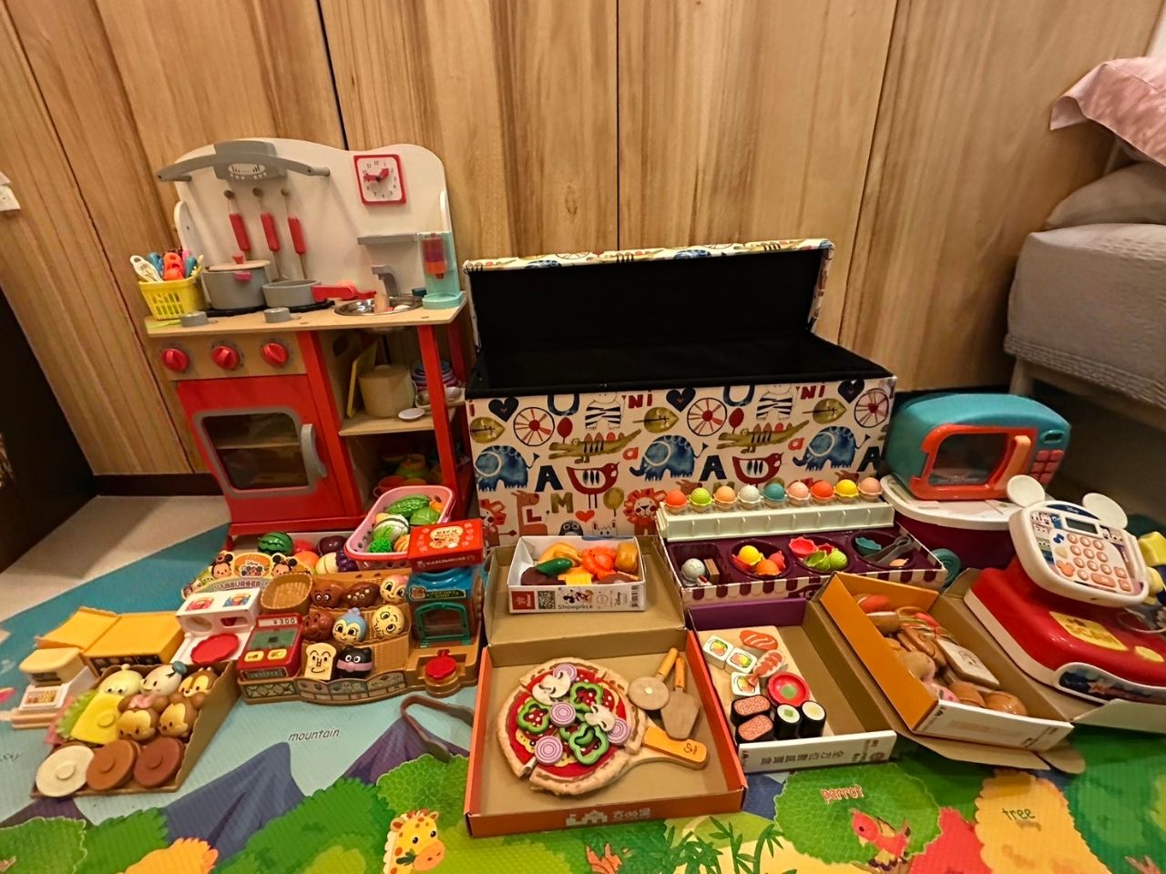 1.廚房玩具、麵包超人玩具等,如下照片,包含大型收納箱一併附送,瑕疵與缺件難免,