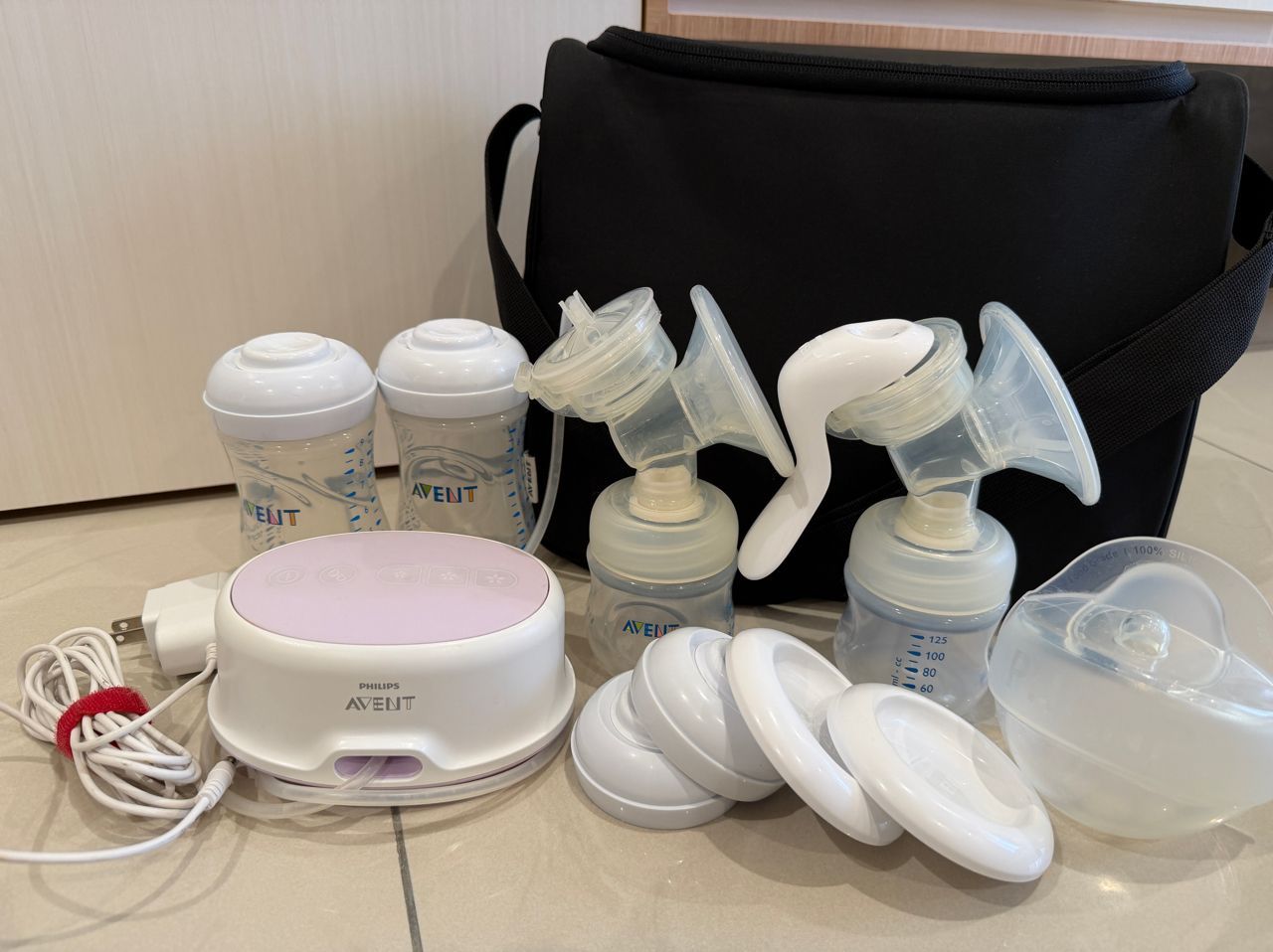 Philips Avent單邊電動吸乳器、手動吸乳器、小雅象母奶收集器/整組合售1200元/階段