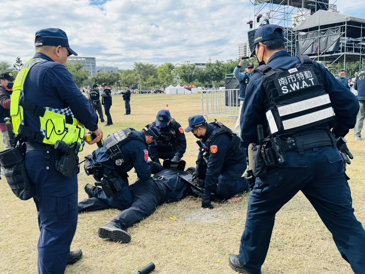 因應北市日前發生隨機殺人案造成4死多人受傷,台南市警察局今天舉辦維安演練,模擬