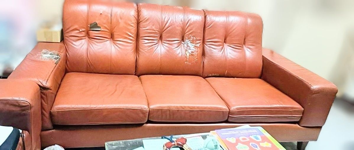 有破損如圖,豆腐座墊可獨立拆下吸塵,背靠和坐墊支撐力還不錯,自取價$800。意者站
