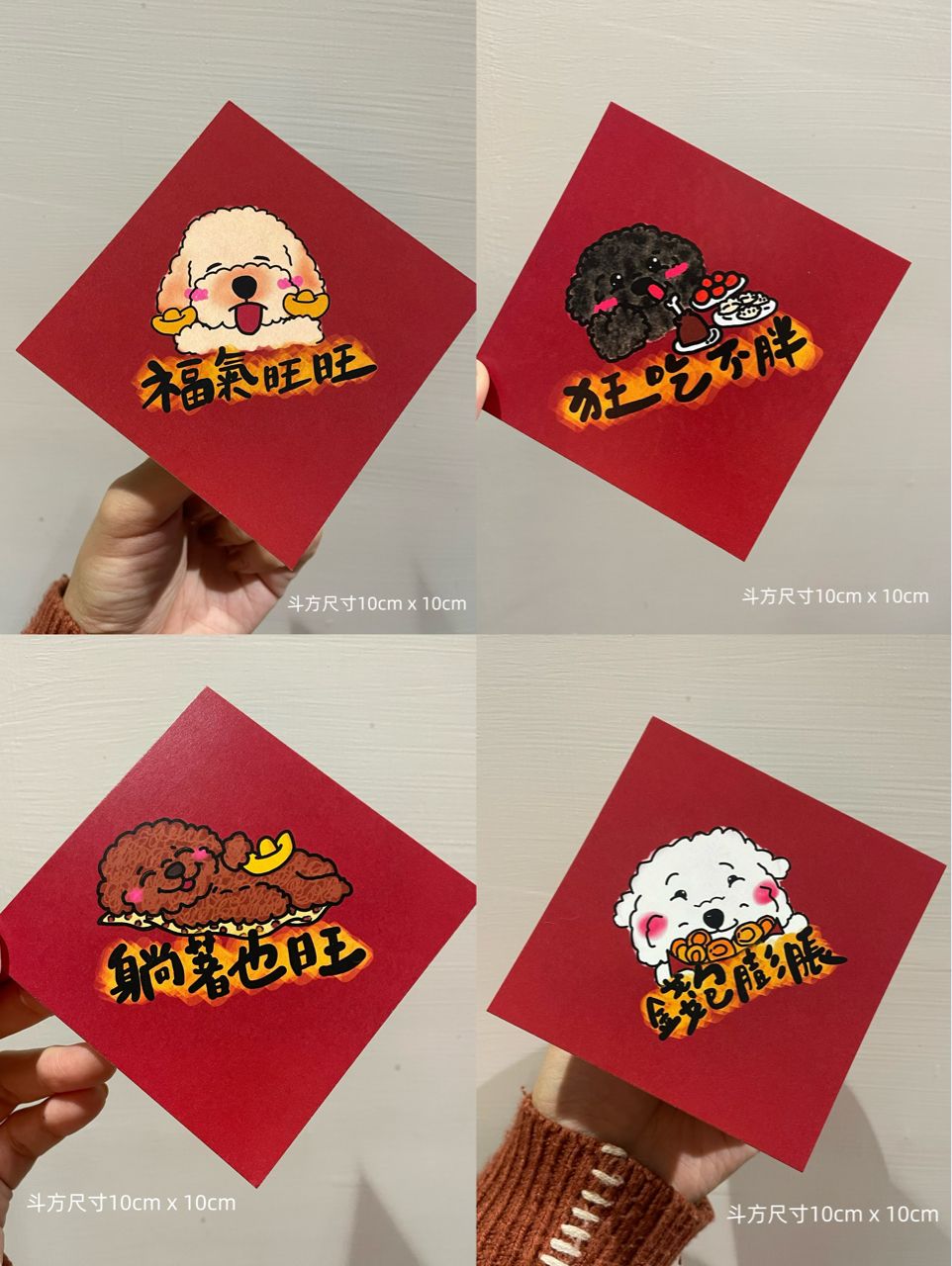 全新電繪狗狗斗方春聯/長寬10公分 $120