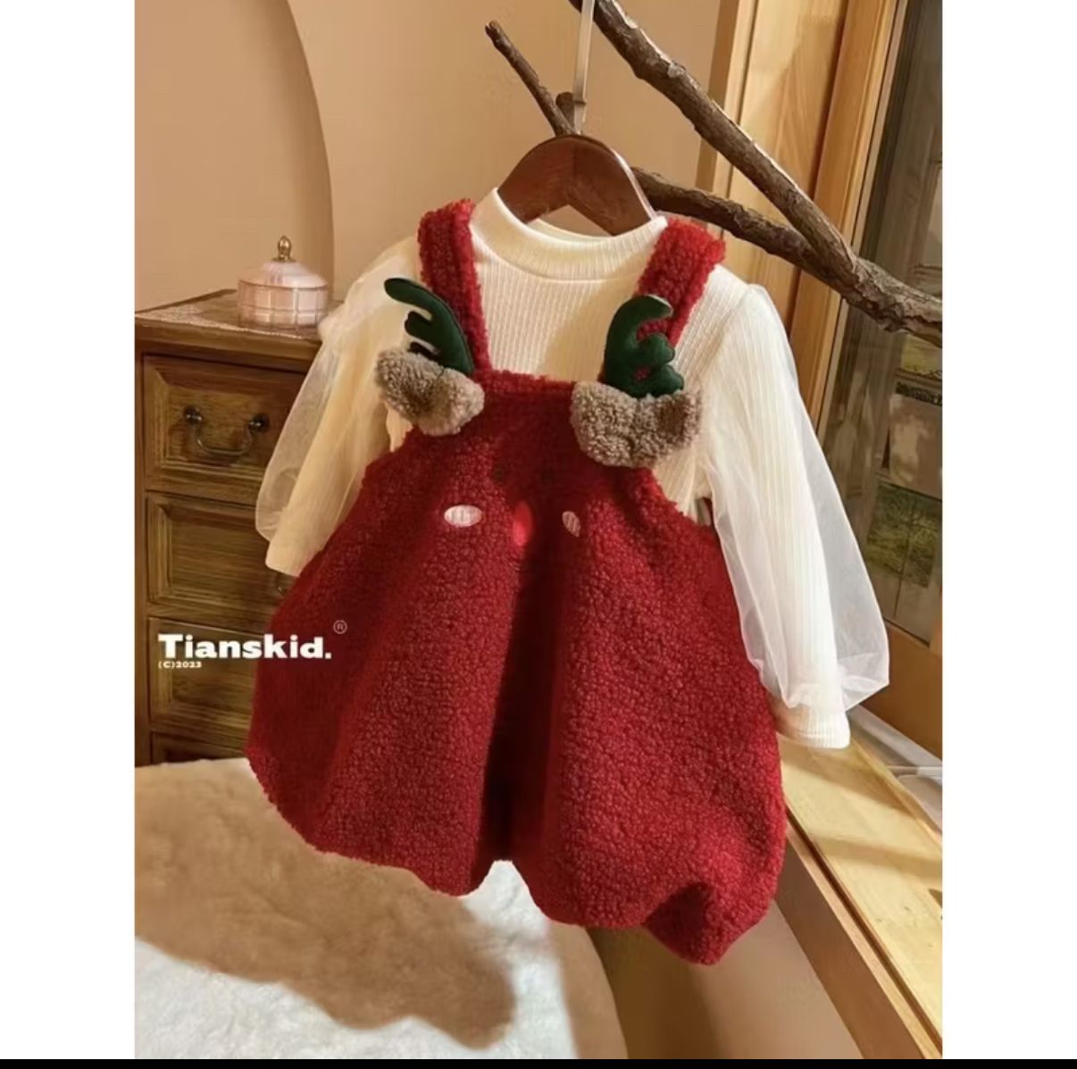 8. 全新 聖誕節套裝 厚版吊帶裙加澎袖上衣尺寸80