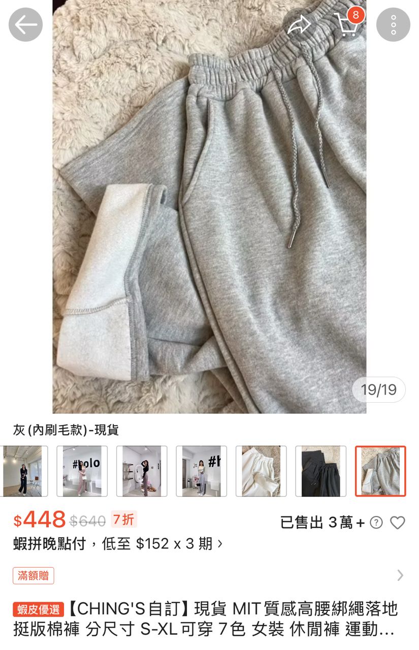 全新未下水綁繩挺版棉褲灰色,有刷毛,尺寸太大故出售。