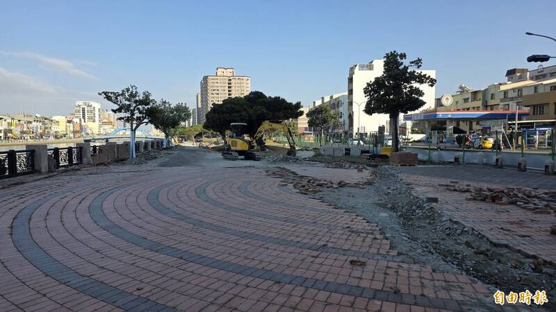 台南運河景觀鋪面正進行翻修。(記者洪瑞琴攝)