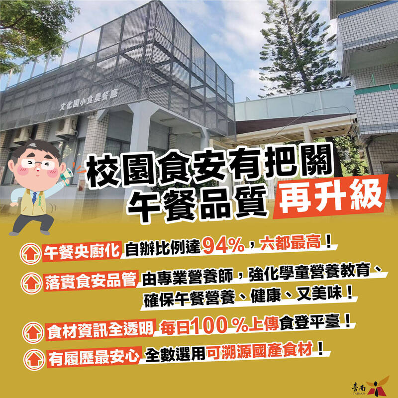 黃偉哲表示,南市多年來深耕學校午餐制度,已建立全台最成熟的供餐體系之一。目前全