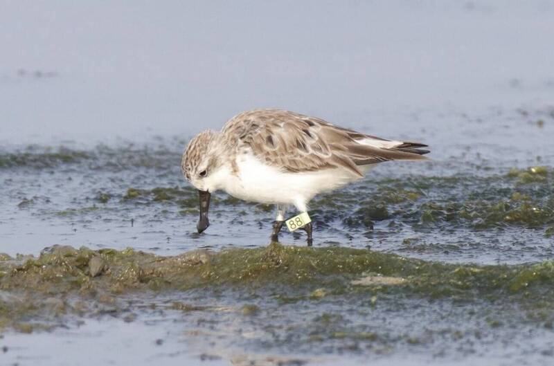 琵嘴鷸綠色足旗在左腳,編號88號。(台南鳥會提供,歷史照片)