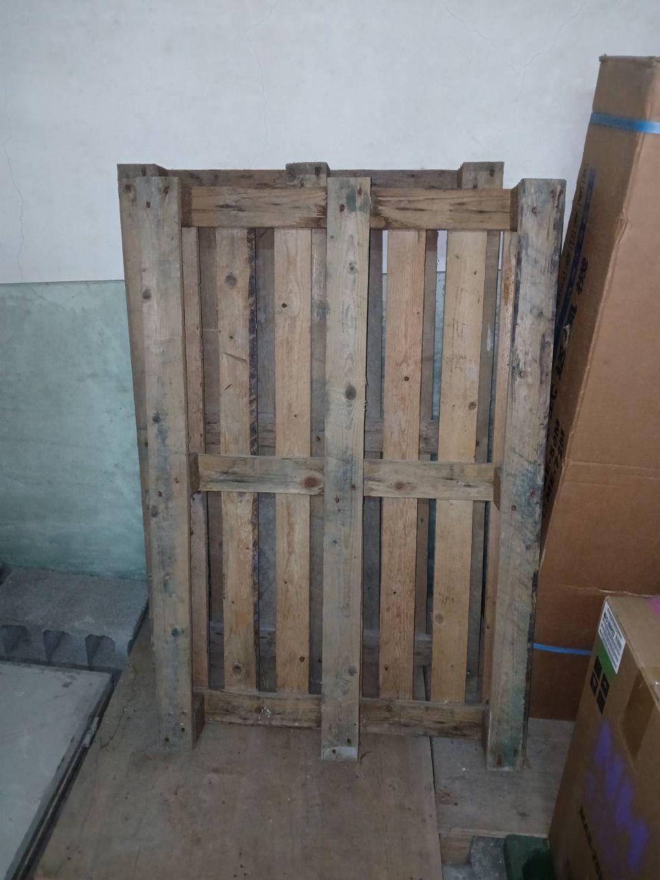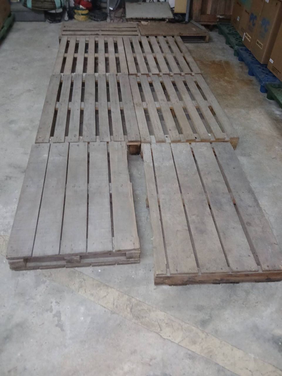 大大小小的木柵棧板,大約有20餘片