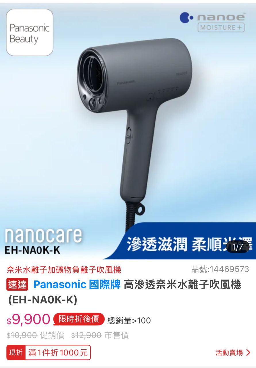 交易物品:Panasonic 國際牌 高滲透奈米水離子吹風機