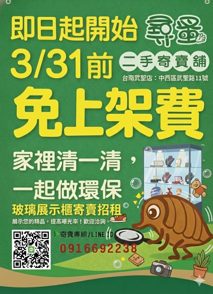大家久等了!尋蚤二手物寄賣鋪(台南武聖店)現在正式開始收貨囉! 家裡清出來的寶