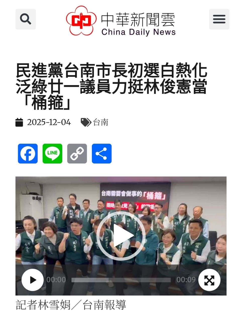 民進黨台南市議員共有28席,林俊憲台南市長黨內初選期間,整合19席的黨內議員相挺,