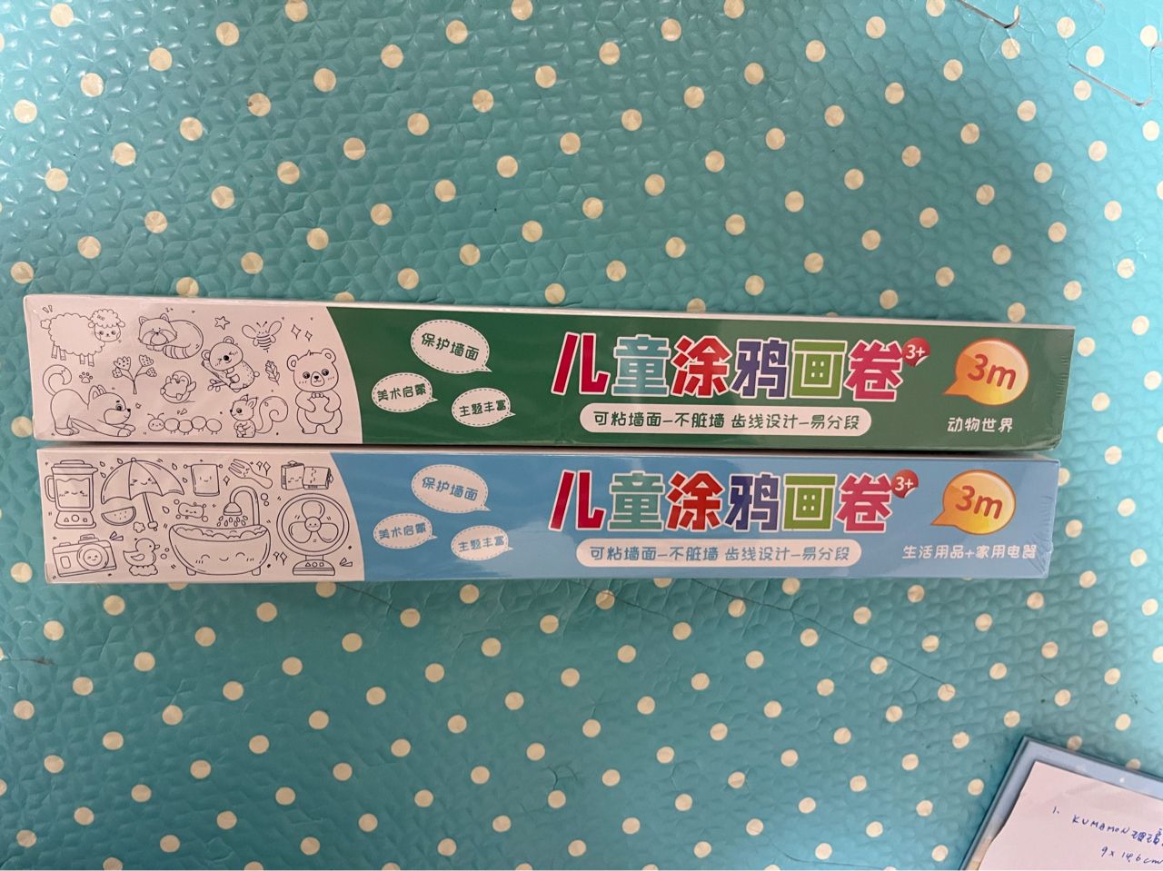 2.兒童塗鴉畫卷,可黏貼牆,隨處可畫的畫卷 300cm (動物世界+生活用品) 兩捲合售$80