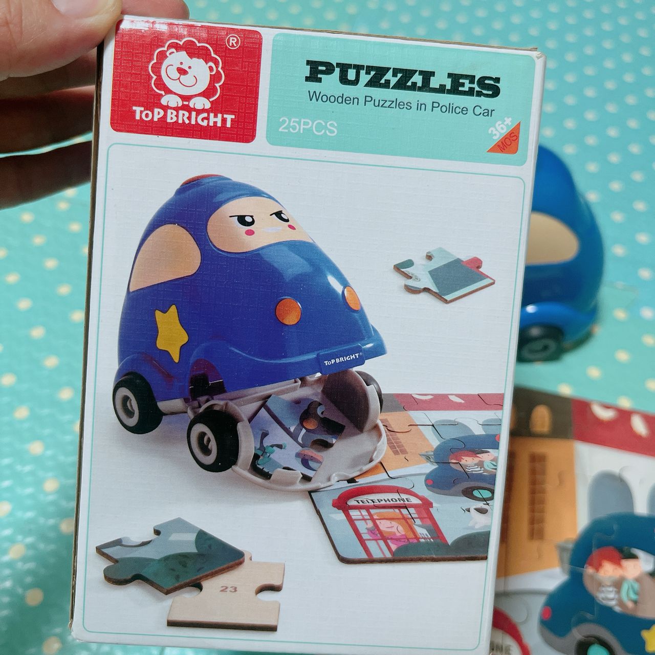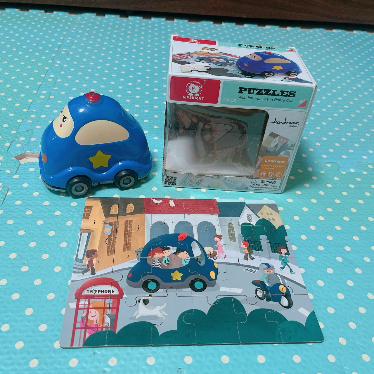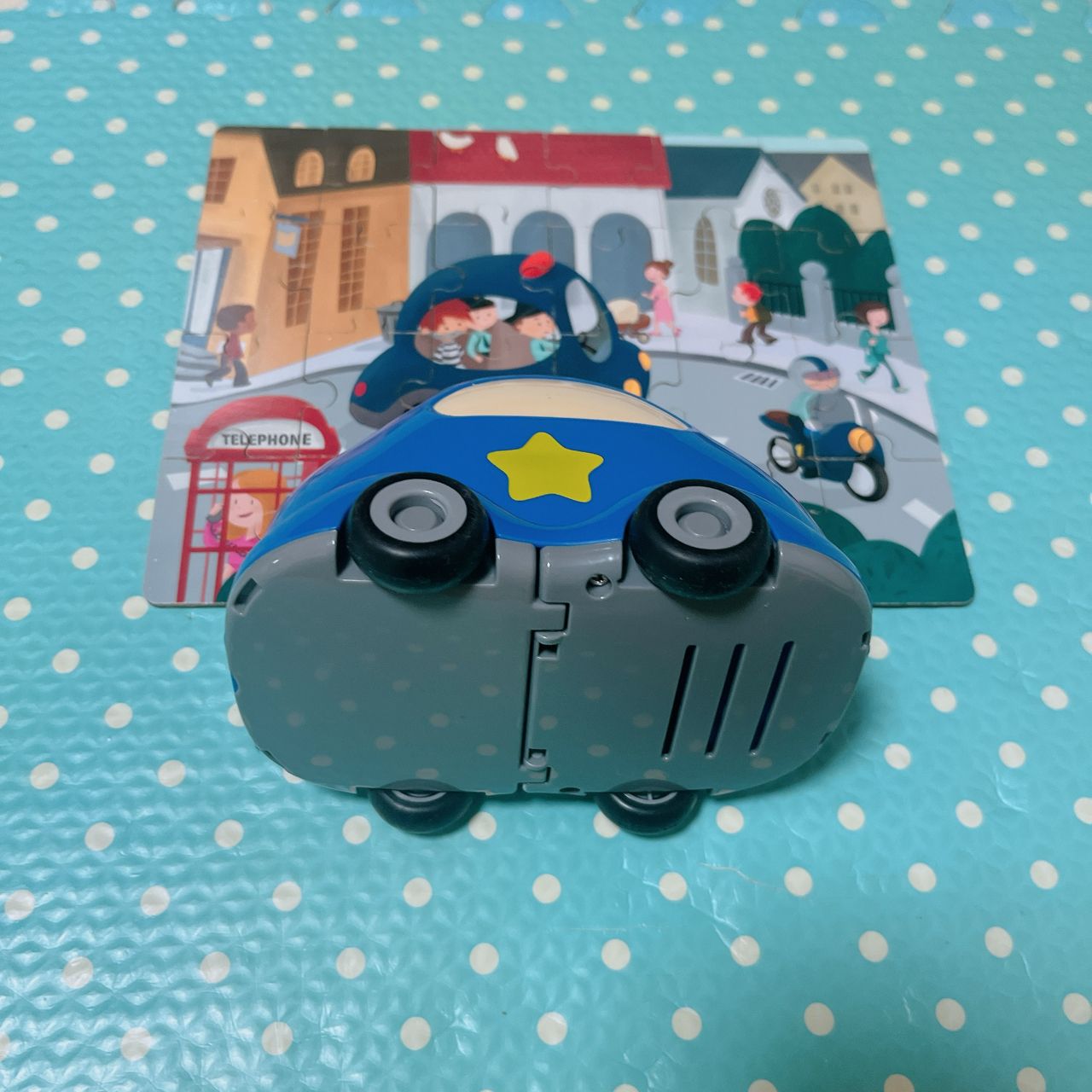 9.小警車可收納式拼圖,拼圖可以直接收進車子裡不會怕找不到唷,盒子有損,不介意再