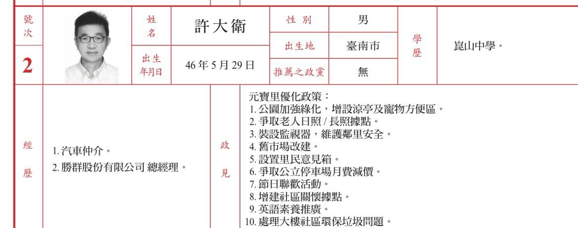 順帶一提的是,許大衛里長當初選舉公報的政見中,