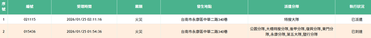 [情報] 永康區中華二路340巷 火災