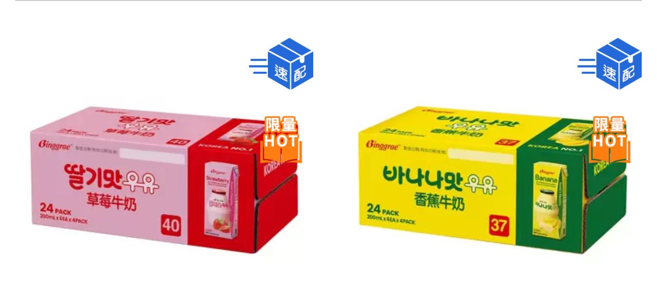 Binggrae草莓牛奶/香蕉牛奶,六瓶一組$150