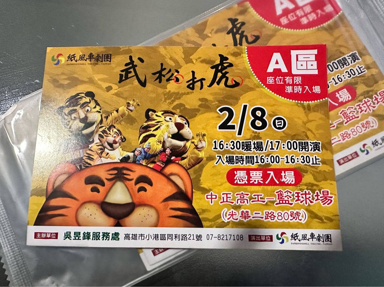 商品名稱: 紙風車劇團 武松打虎 2/8 1700@高雄 中正高工 四張票