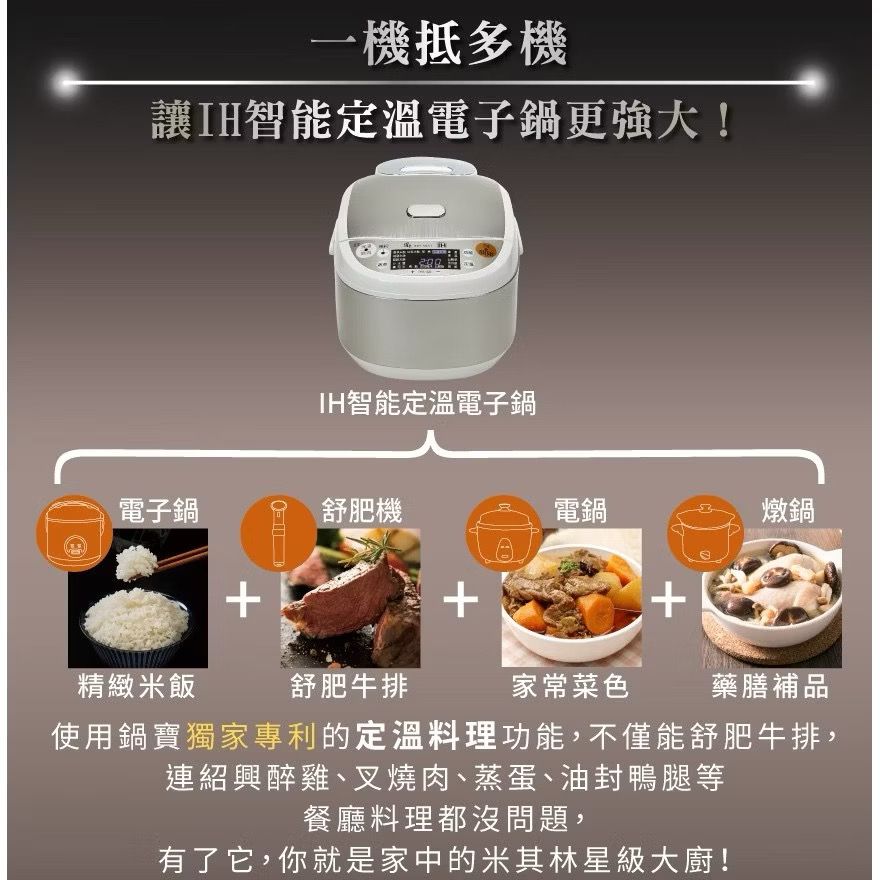 內容:IH電子鍋+蒸架+飯匙+食譜+米杯+厚釜內鍋