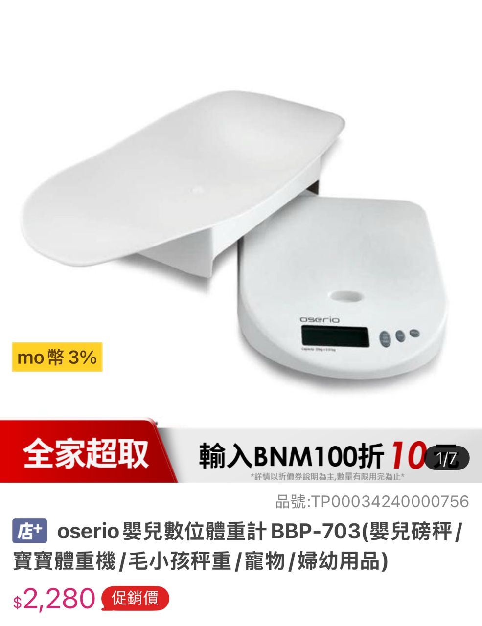 交易物品:oserio 寶寶體重計